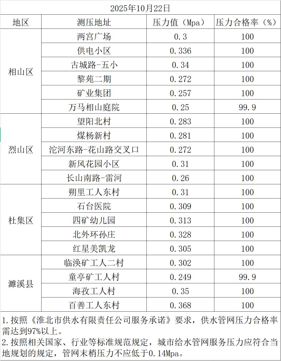 2025年10月22日水壓抽測(cè)公示